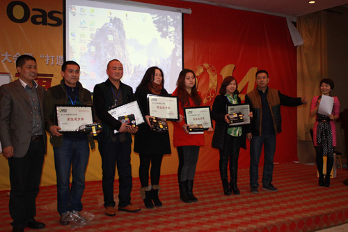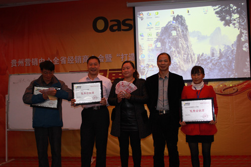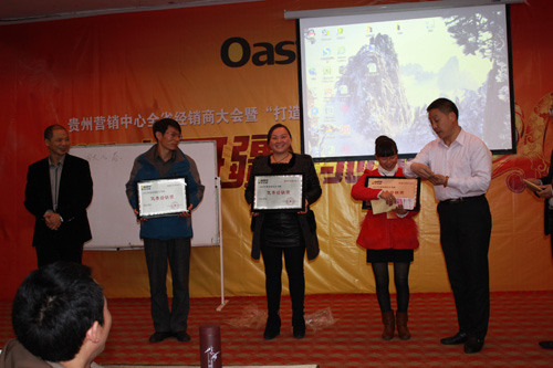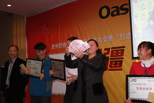 下午,经销商大会由山东谢总进行了一个简短实战培训后,随之进入贵州营销中心的会议开展流程。大会由贵州营销中心团队就有关经销商活动配合问题,经销商开发维护,广告实施及报销政策,后勤出发货相关配合问题等进行了议程。其间穿插了由营销中心策划开展的优秀、进步经销商颁发奖金,奖牌及礼品,沿河、开阳经销商登台演讲,趣味抽奖等活动。不断将本次经销商大会推向高潮,最终使经销商大会获得圆满成功!晚间,营销中心冯总与多位地区经销商进行了PK活动,所PK的销售量竟达到了2014年既定目标任务的五分之三。再次为本次两天会议活动的成功,划上了圆满句号。