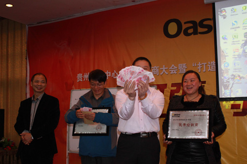 谢总给优秀经销商颁发奖金